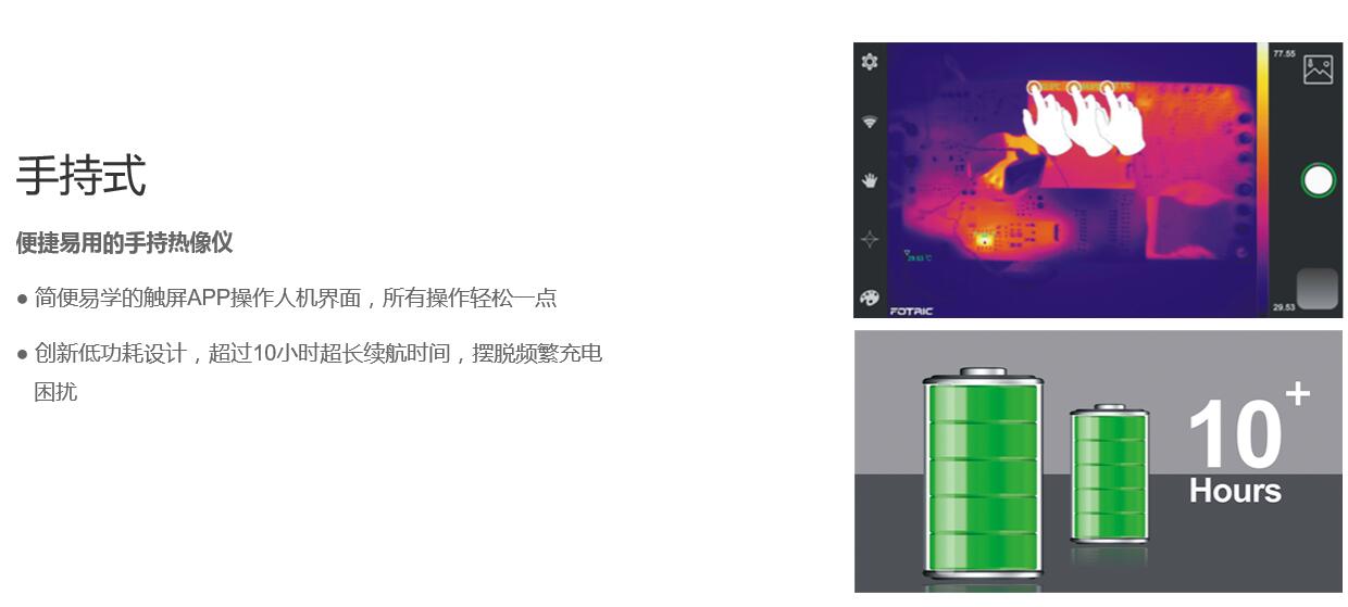 Fotric 227為FOTRIC 220系中創新型熱像儀的中高端型號查詢,不只具備著512*384的紅外分辯率,最能體現備圖片分辨率提升藥理作用,是可以改變4倍圖案清析度,幀率晉職為1024*768。在標準廣角鏡頭下較小三維成像間隔時間為0.1m。更有三種專注選件,對答各種各樣自測手段與場所需求。通過進程中InnovatIR APP是可以隨意在華為手機將領當場報告書快速自身,改變豐富多彩化的團隊相互合作相互合作。通過進程中電子設備毗連AnalyzIR專注闡發app軟件,全版知足創新朋友刻薄的進行需求創造。